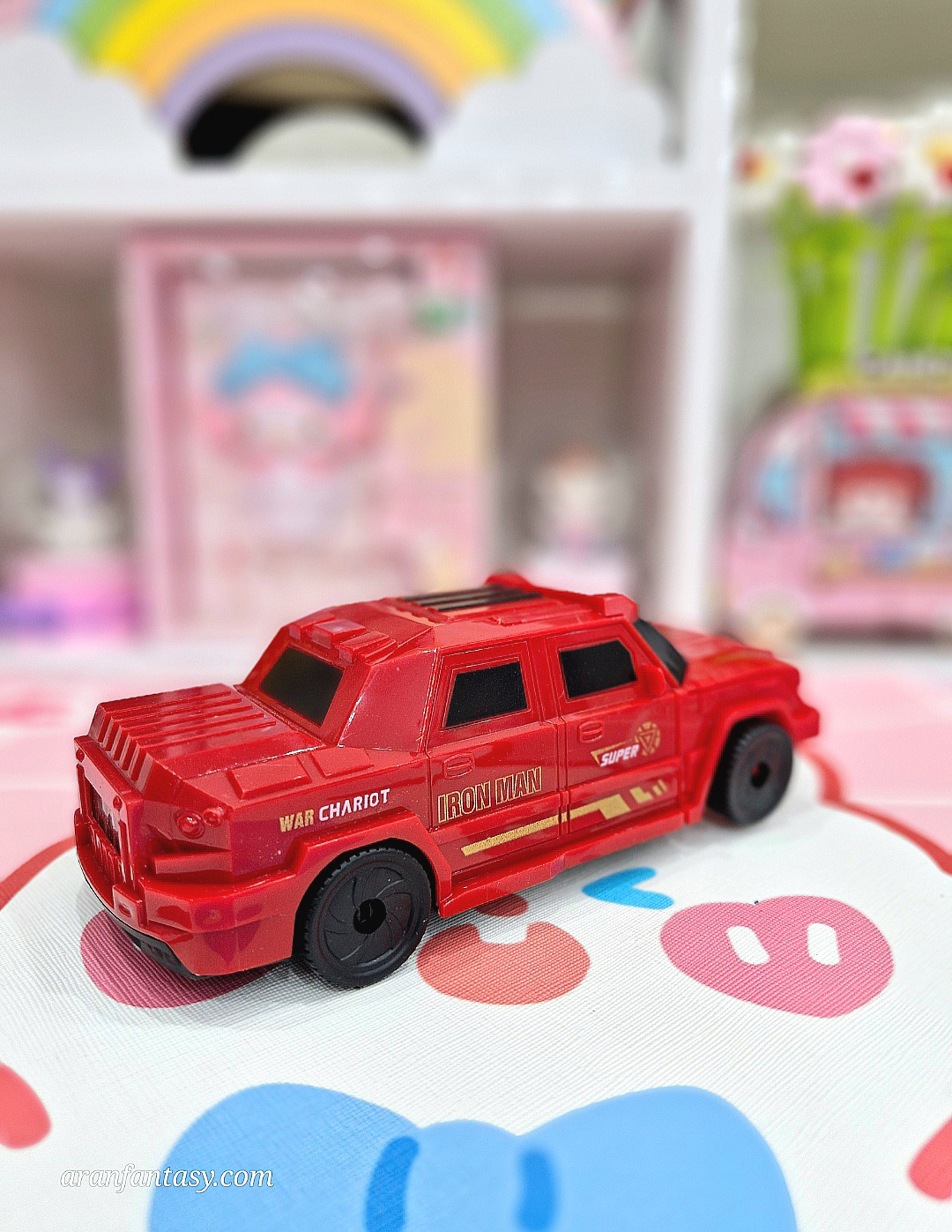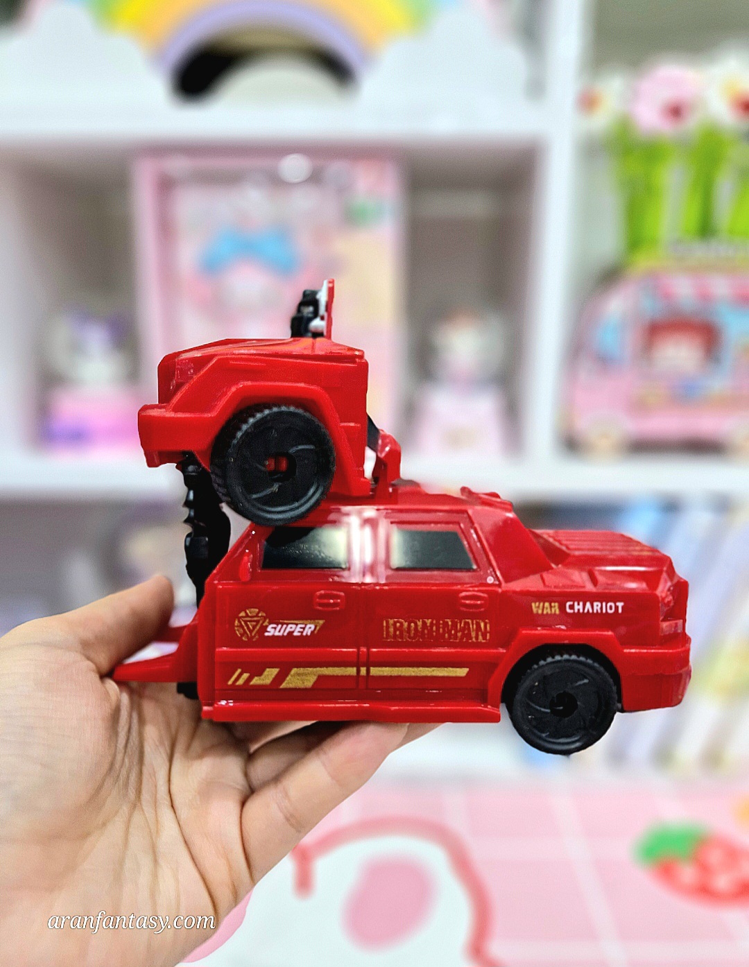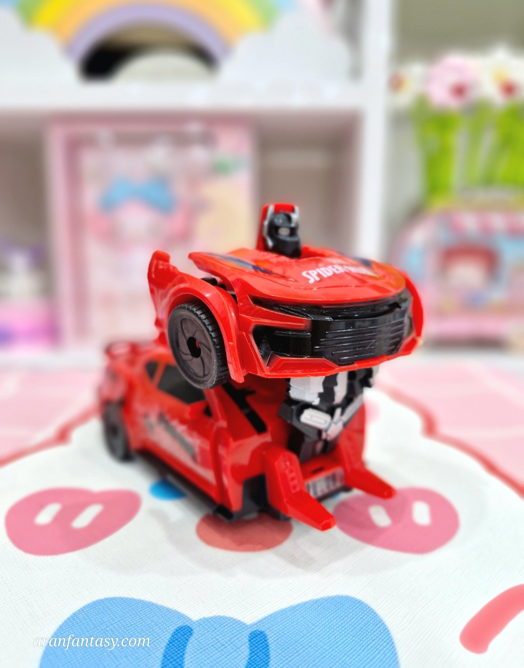 ماشین رباتشو باتریخور یک اسباببازی هیجانانگیز و متفاوت برای کودکان است که در حین حرکت، بهصورت خودکار از ماشین به ربات تبدیل میشود و دوباره به حالت ماشین بازمیگردد. این محصول دارای چراغهای نوری جذاب بوده و هنگام حرکت، با برخورد به موانع مسیر خود را تغییر میدهد و چرخه تبدیل ماشین به ربات را دوباره آغاز میکند.