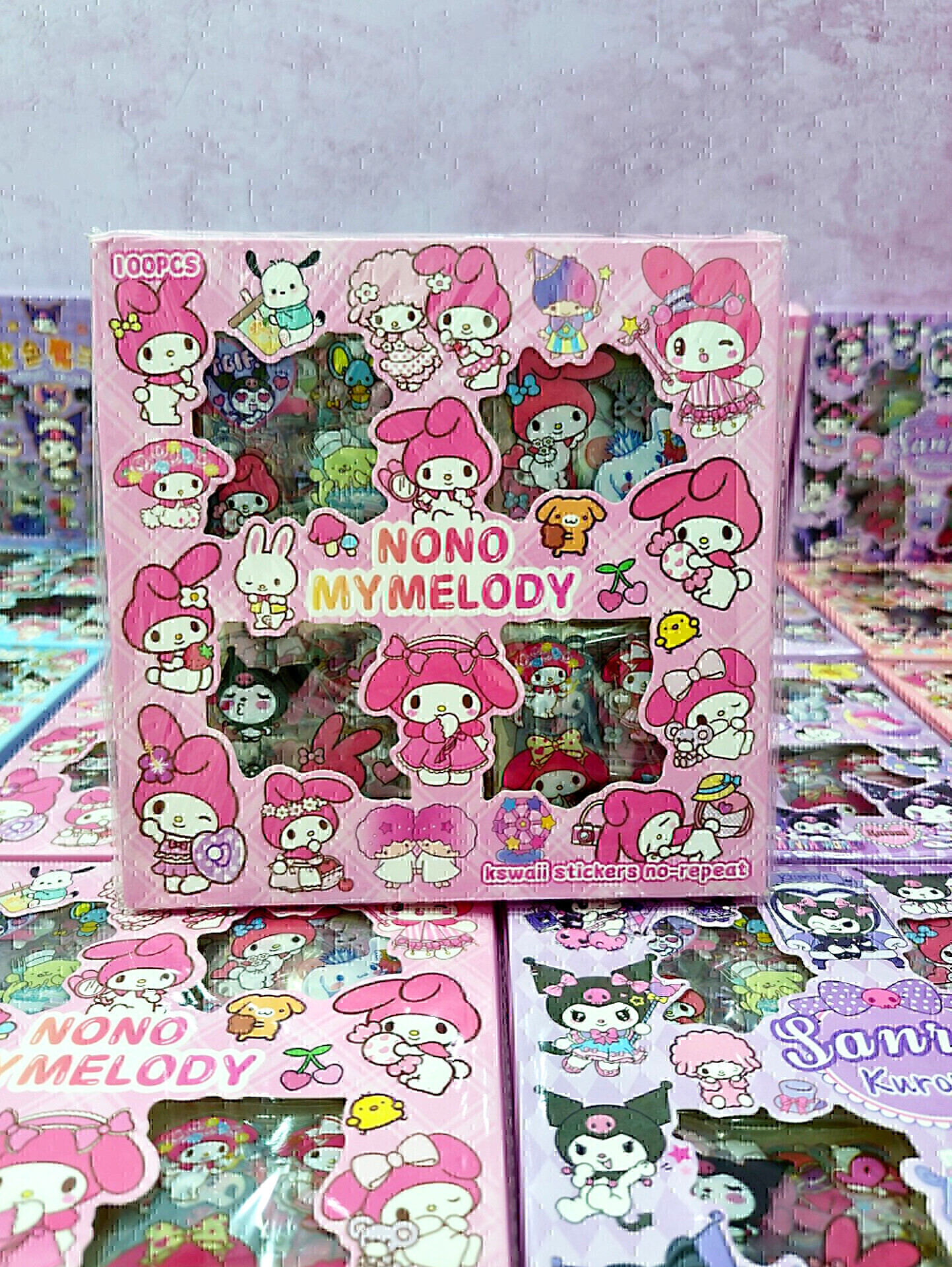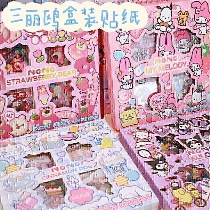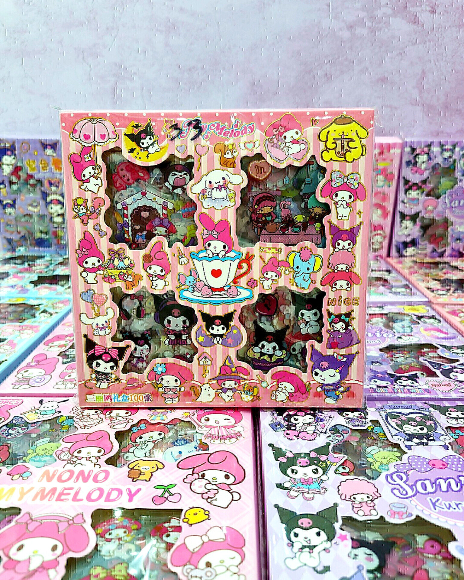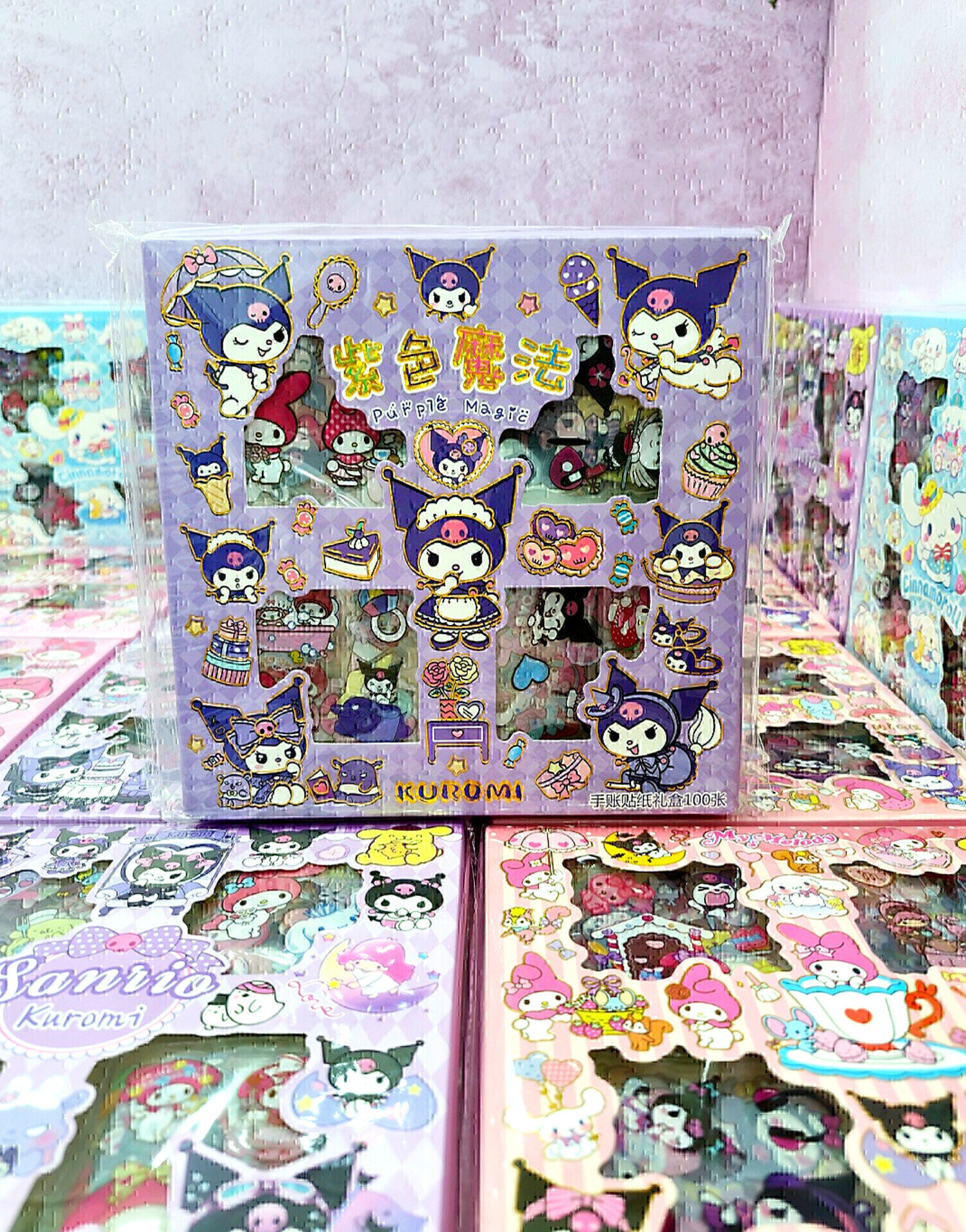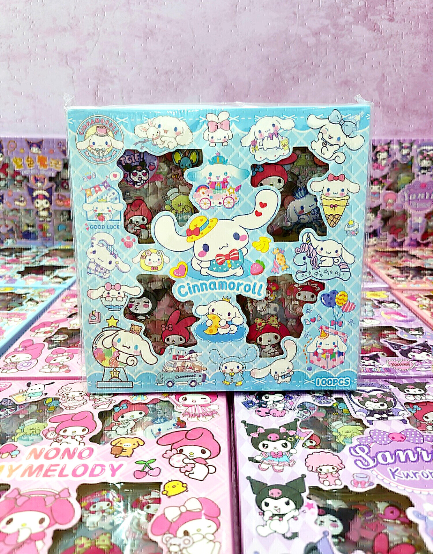 جعبههای این پکها با عکسهای زیبای شخصیتهای سانریو تزئین شده و داخل هر پک ۱۰۰ ورق استیکر متنوع از دنیای سانریو قرار گرفته. کیفیت بالای استیکرها و طراحی شیک بستهبندی، این پکها رو به انتخابی ایدهآل برای کودکان، نوجوانان و بزرگسالان علاقهمند به شخصیتهای محبوب سانریو تبدیل کرده.