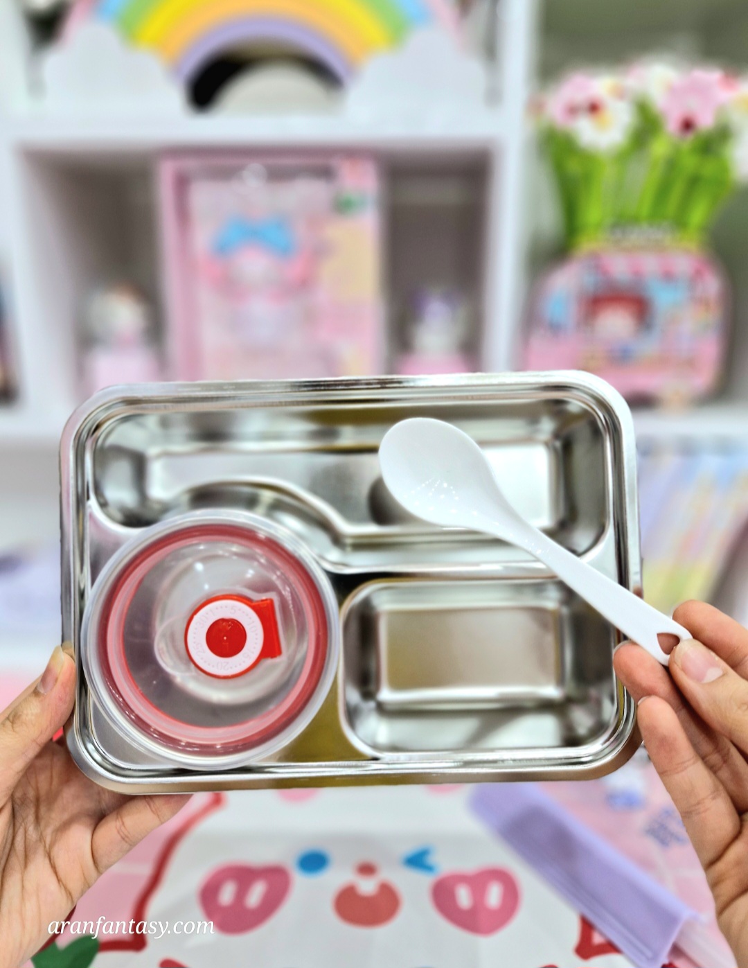 ظرف غذا استیل طرح کرومی و بنفش با درب شفاف و سه بخش مجزا، گزینهای عالی برای حمل و نگهداری انواع غذاها. یکی از بخشها شامل یک کاسه استیل دربدار است که به راحتی قابل جدا شدن است و حتی میتوان برش هم داشت. درب پلاستیکی سوپاپدار از نشت و ریختن محتویات جلوگیری میکند و یک قاشق سفید پلاستیکی کوچک نیز همراه ظرف ارائه شده است. طراحی فانتزی و کاربردی آن، این ظرف غذا را برای مدرسه، محل کار و پیکنیک مناسب میکند.
