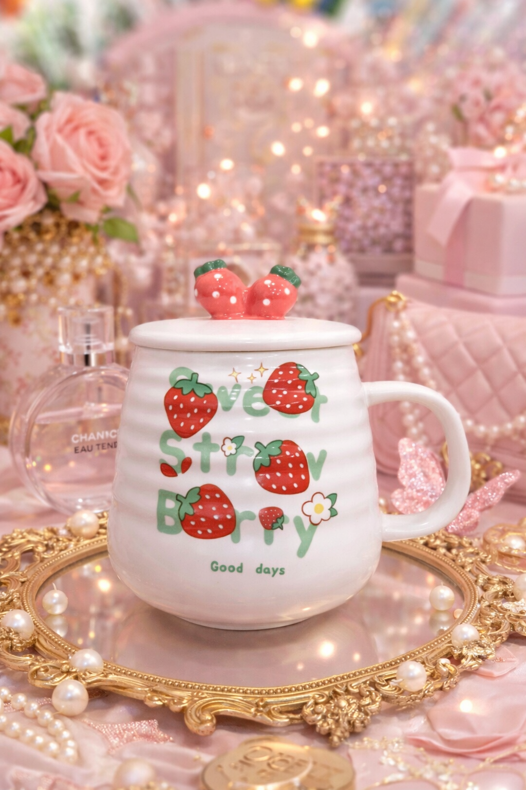 ماگ سرامیکی فانتزی طرح توت فرنگی وارداتی و خارجی
