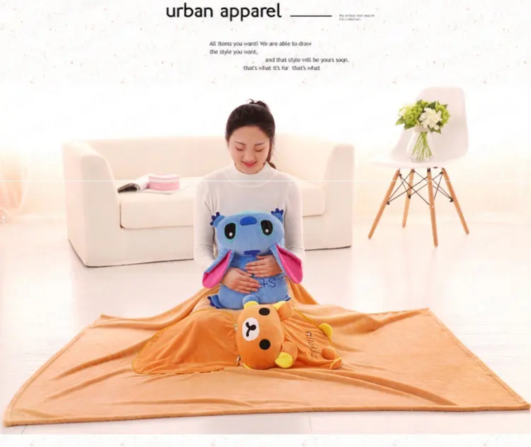 ترکیب خلاقانهی عروسک، بالش و پتو در یک محصول
