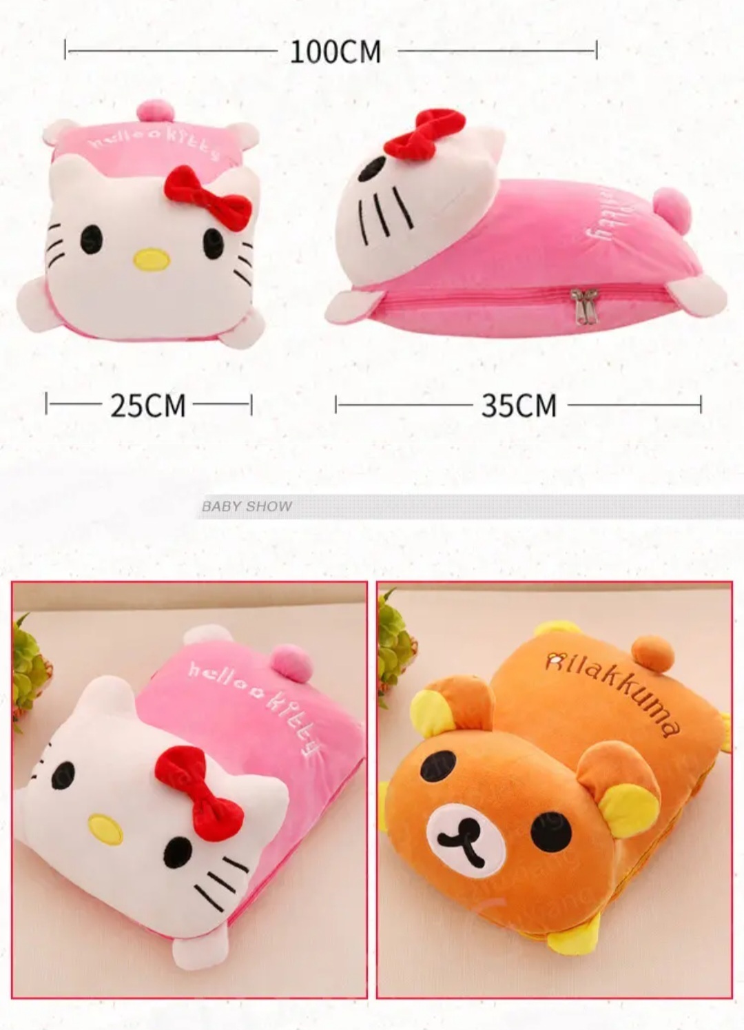 این محصول دو کارهی جذاب، وقتی زیپش بسته است، یه عروسک ناز و نرمه که میتونی ازش به عنوان بالش استفاده کنی — چه برای خواب، چه برای تکیه دادن موقع تماشای فیلم یا سفر.