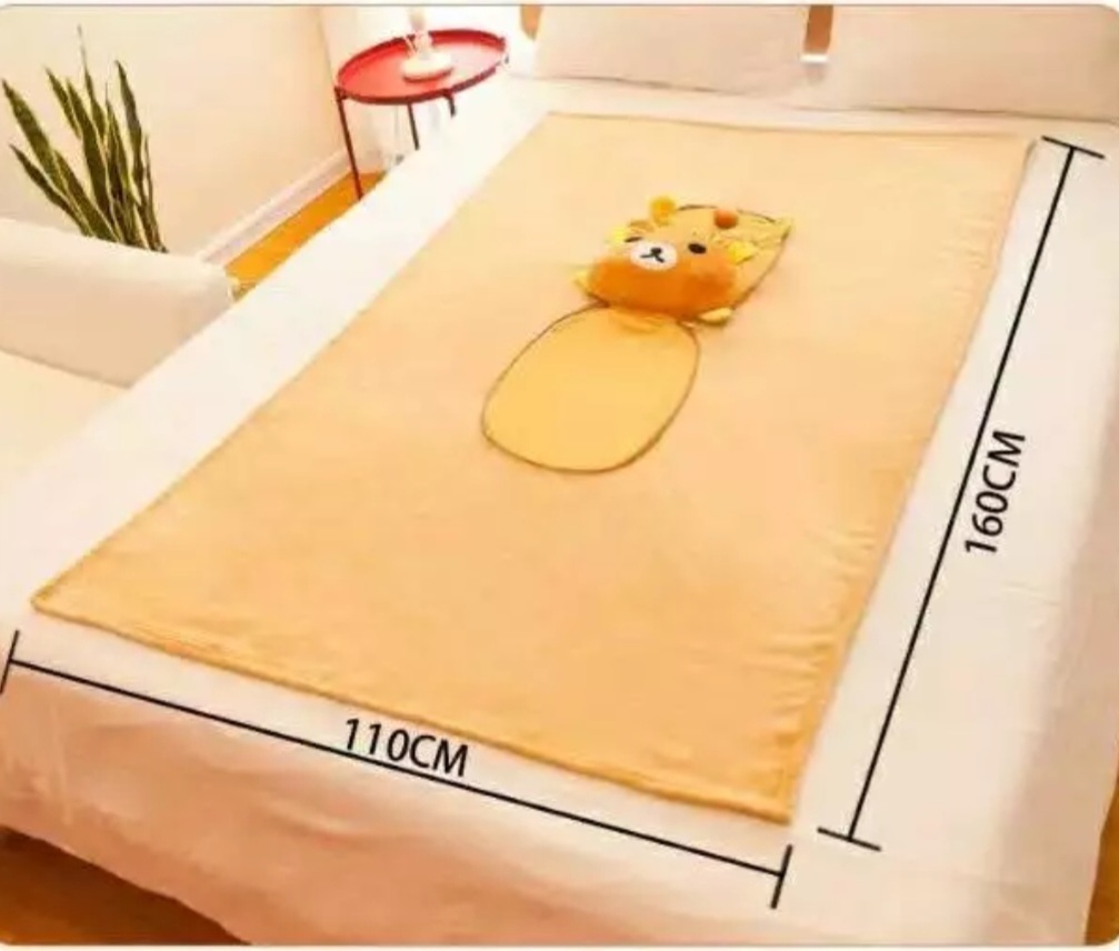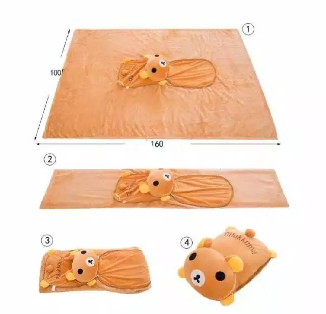 اما وقتی زیپش رو باز میکنی، یه پتوی کامل و گرم ازش بیرون میاد! سر و بدن عروسک میافته وسط پتو و طرح خوشگلش پخش میشه روی کل پتو.