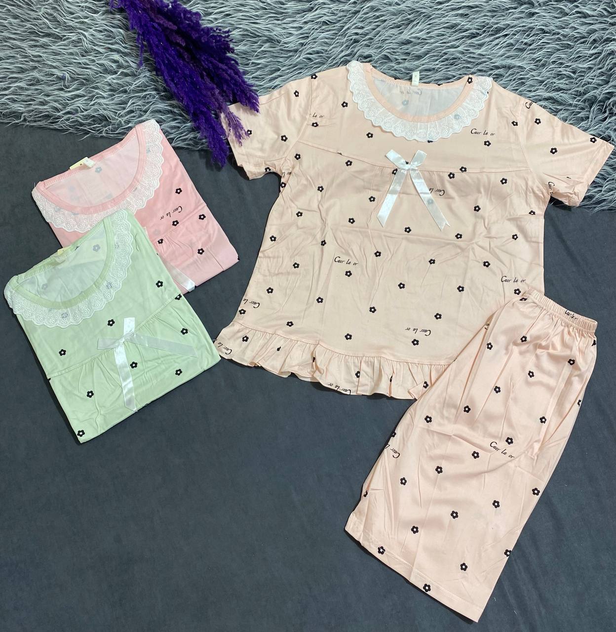 بلوز شلوارک نخ پنبه طرح گل ریز وارداتی و خارجی