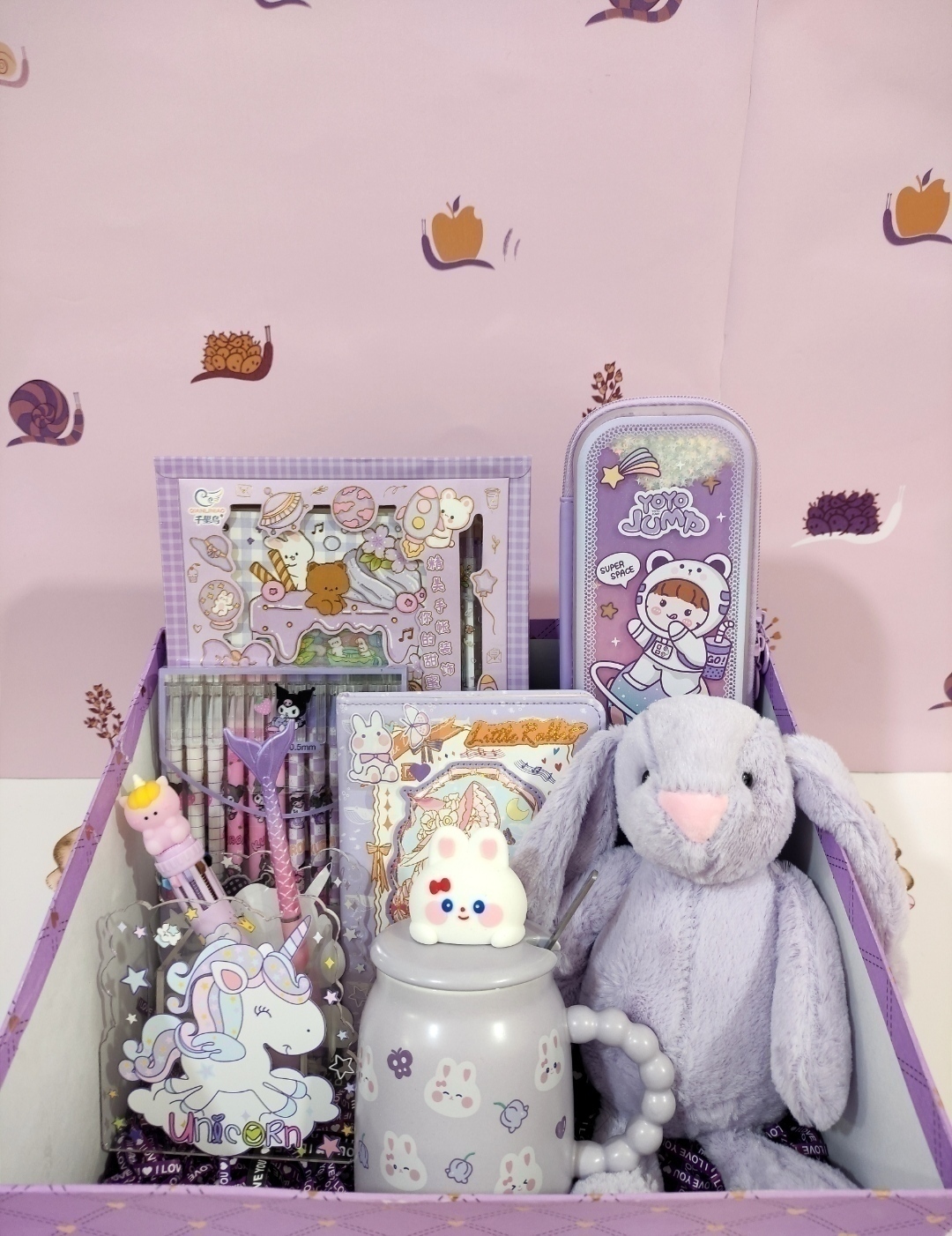 جعبه ی بنفشی که در عکس محصولات در آن چیده شده است جزو اقلام ست نمیباشد.