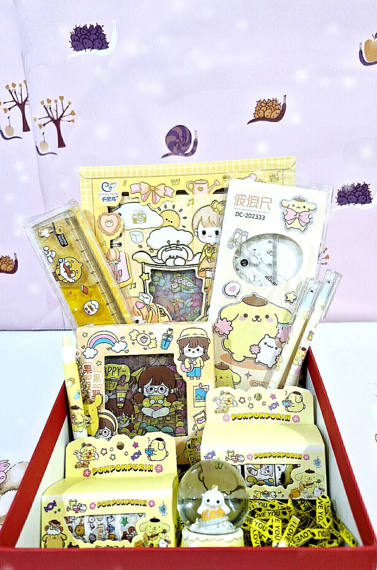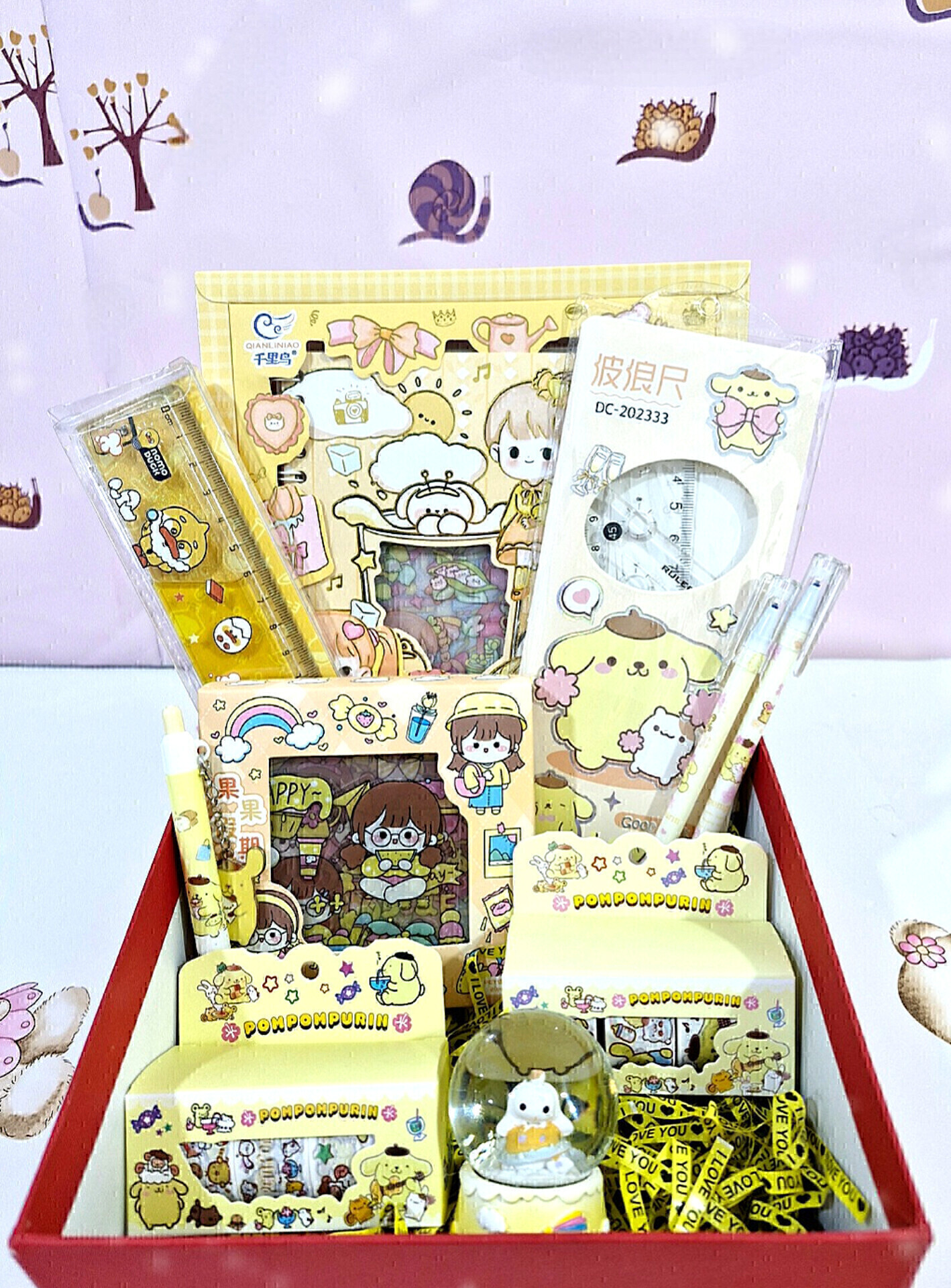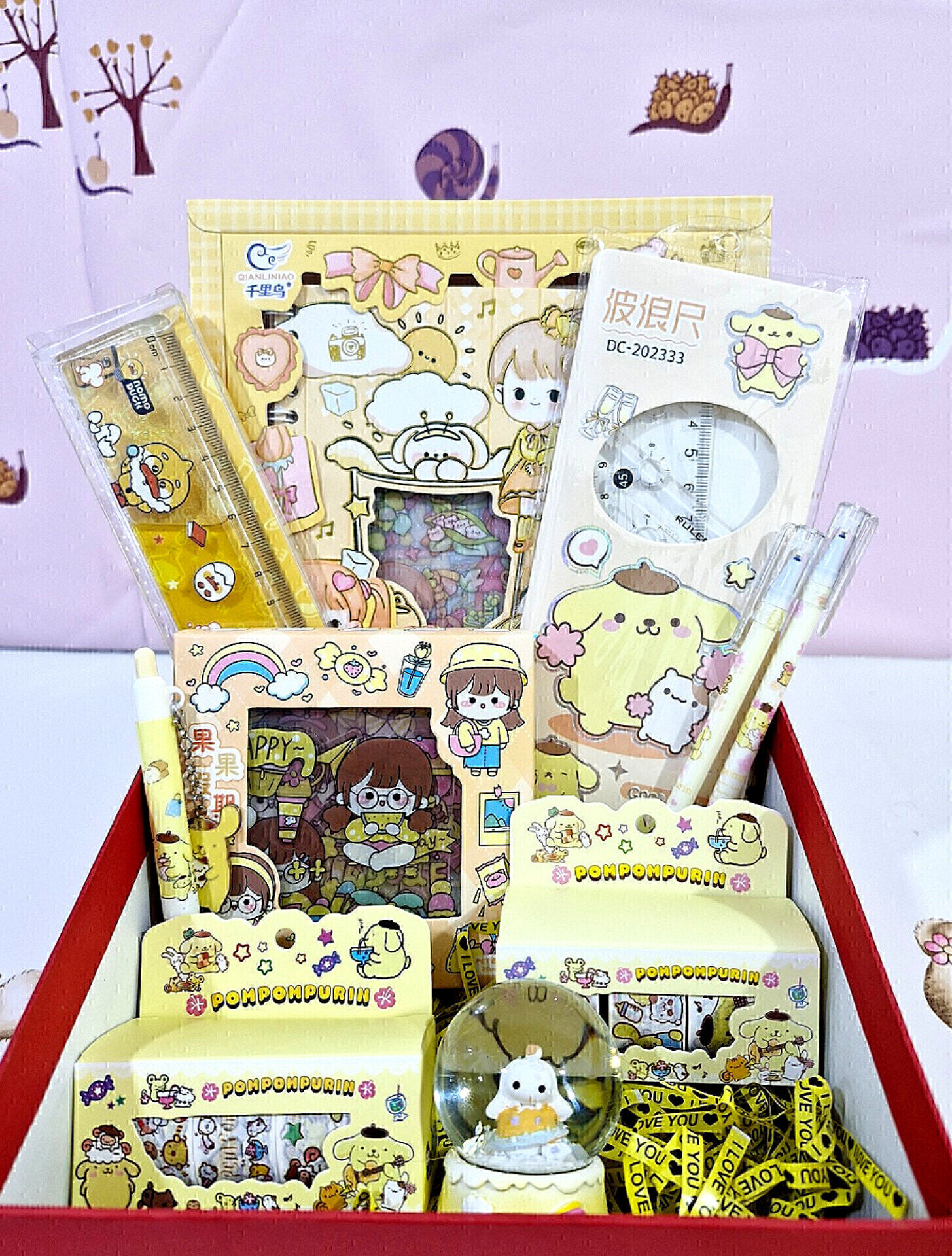 ست هدیه و لوازم فانتزی طرح دختر کیوت و پوم پوم زرد 5