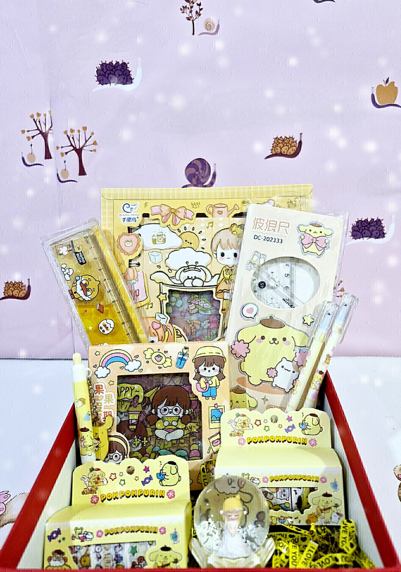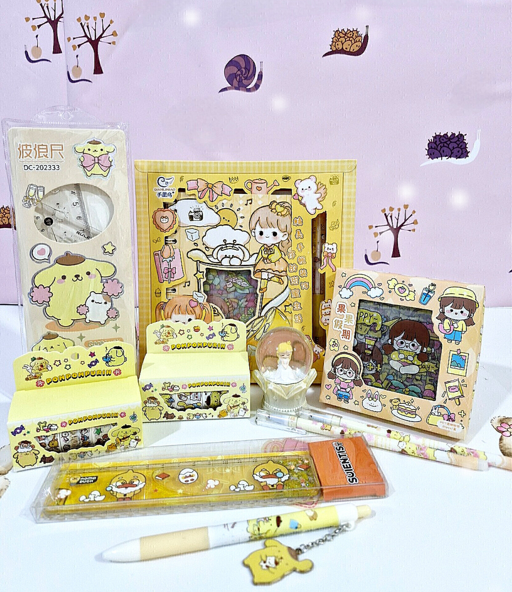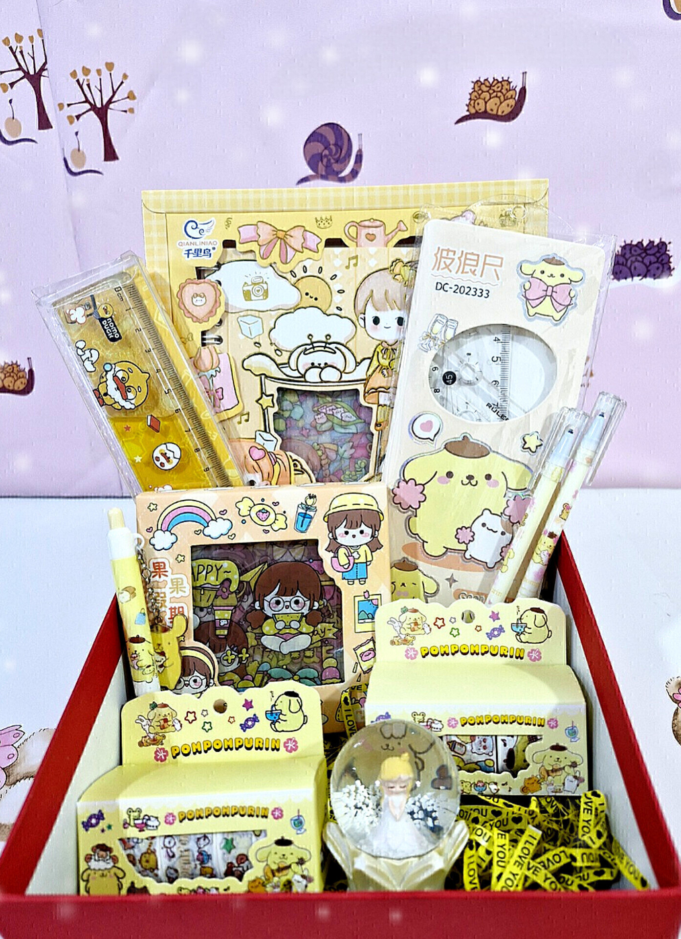 ست هدیه و لوازم فانتزی طرح دختر کیوت و پوم پوم زرد 6