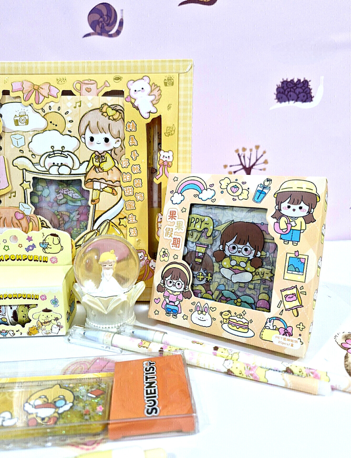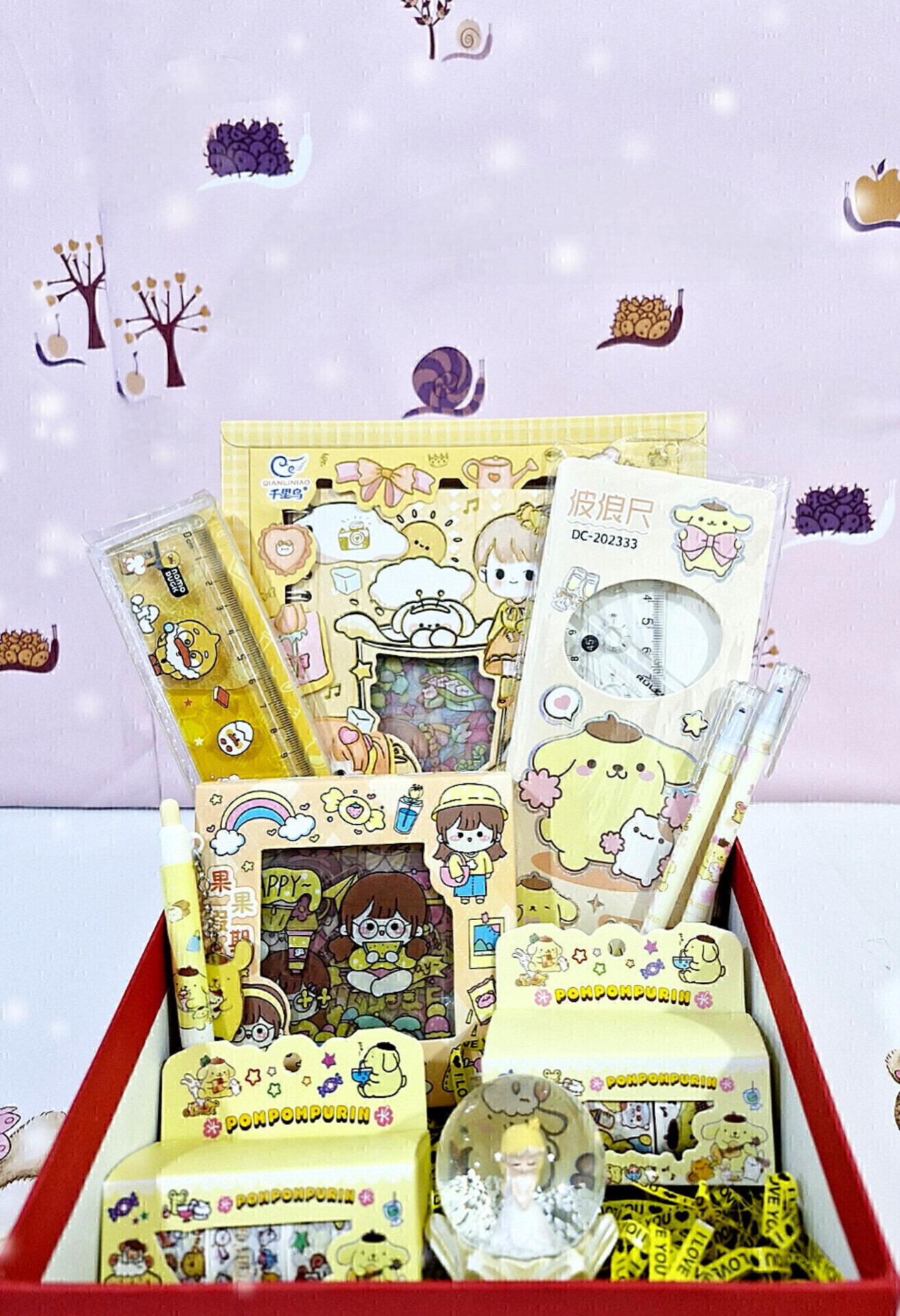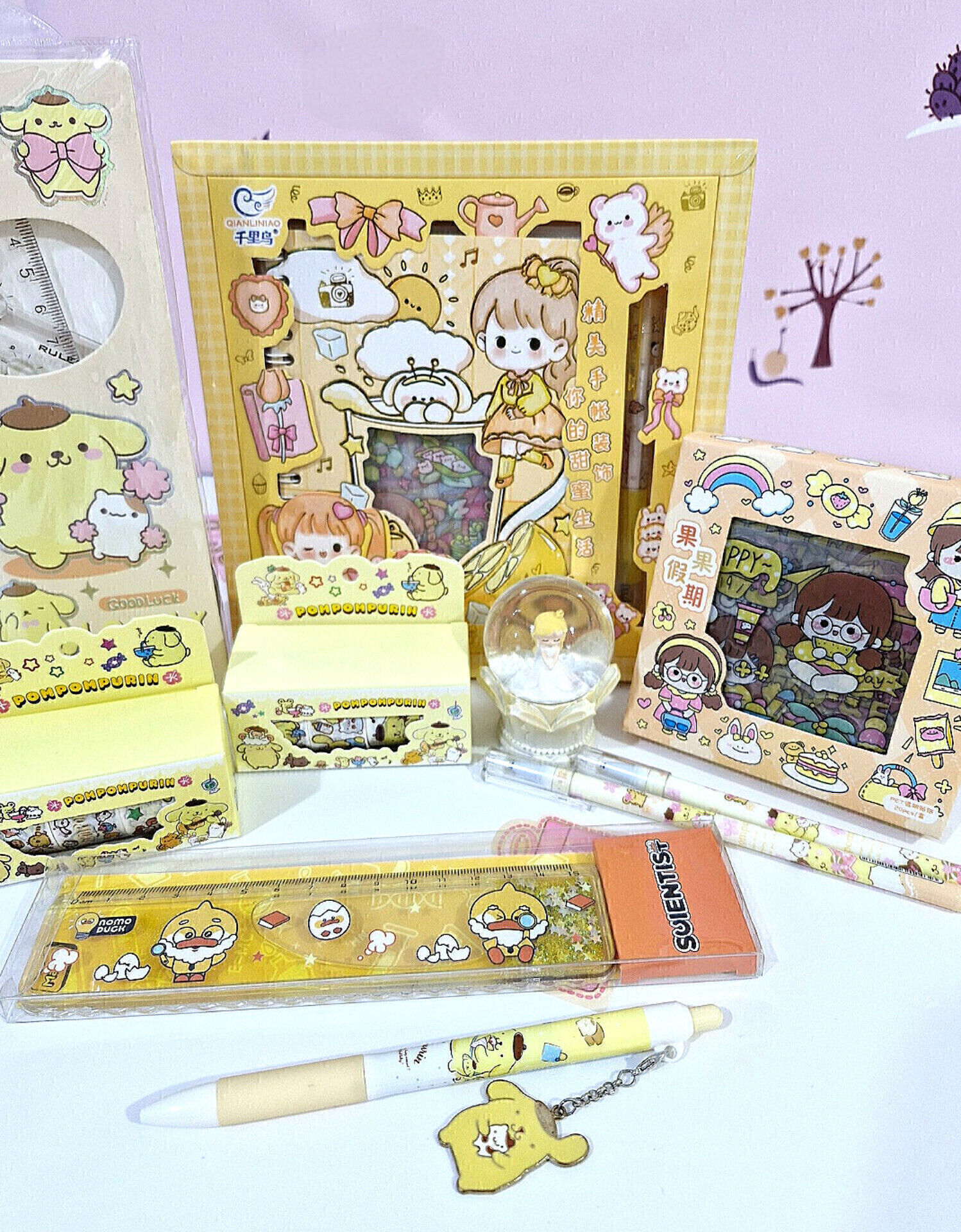 ست هدیه و لوازم فانتزی طرح دختر کیوت و پوم پوم زرد 6