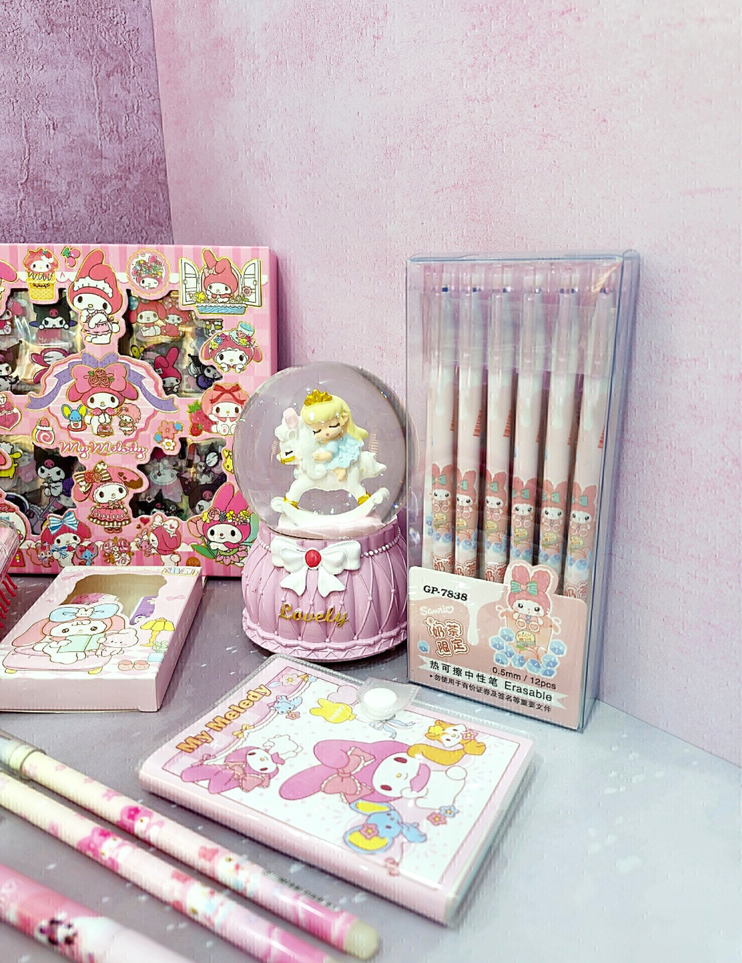 4-دفترچه پک استیکر (چند ورق استیکرسانریو از دو مدل جنس کاغذی و طلقی داره و همچنین دارای برگه ی یادداشت طرح دار برای نوشتن است )
