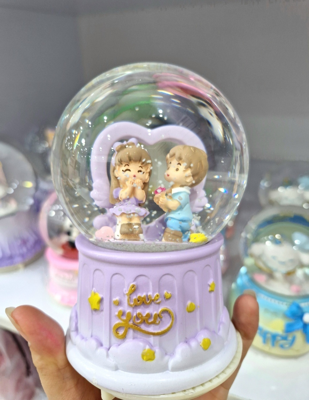 گوی موزیکال سایز متوسط طرح عاشقانه بنفش وارداتی و خارجی