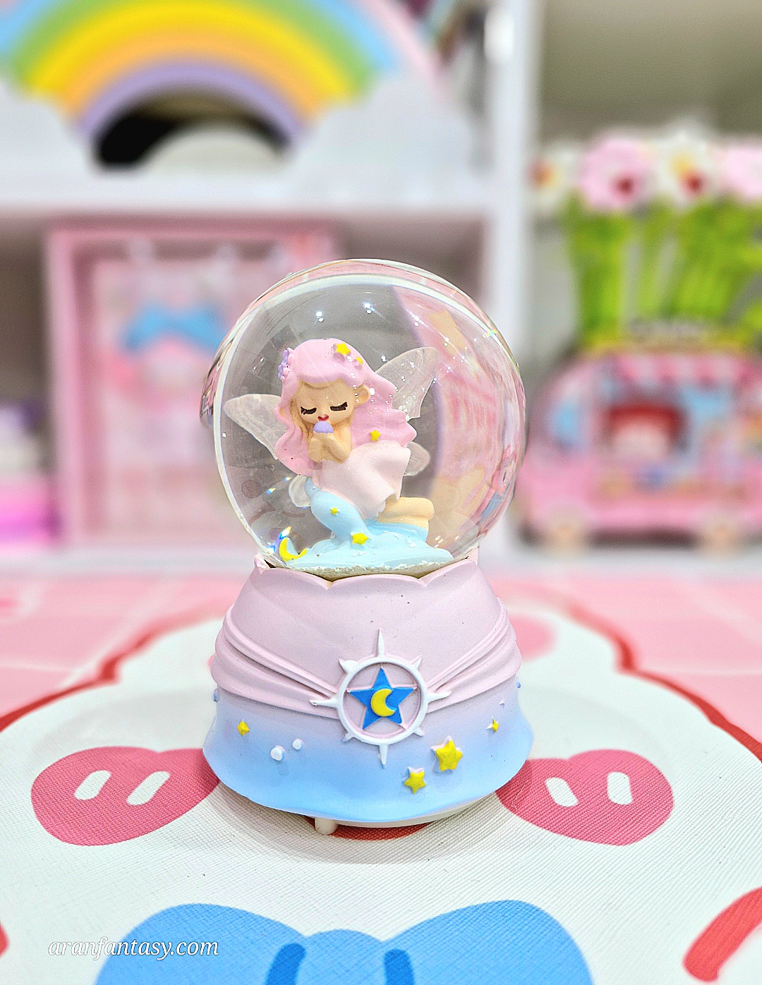گوی موزیکال فانتزی متوسط – طرح فرشته بالدار صورتی، وارداتی