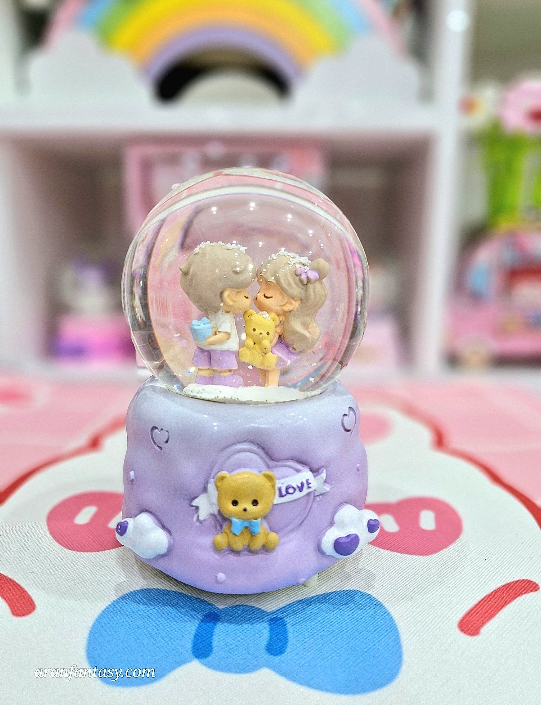 گوی موزیکال فانتزی متوسط – طرح دختر و پسر عاشق و خرس بنفش ، وارداتی