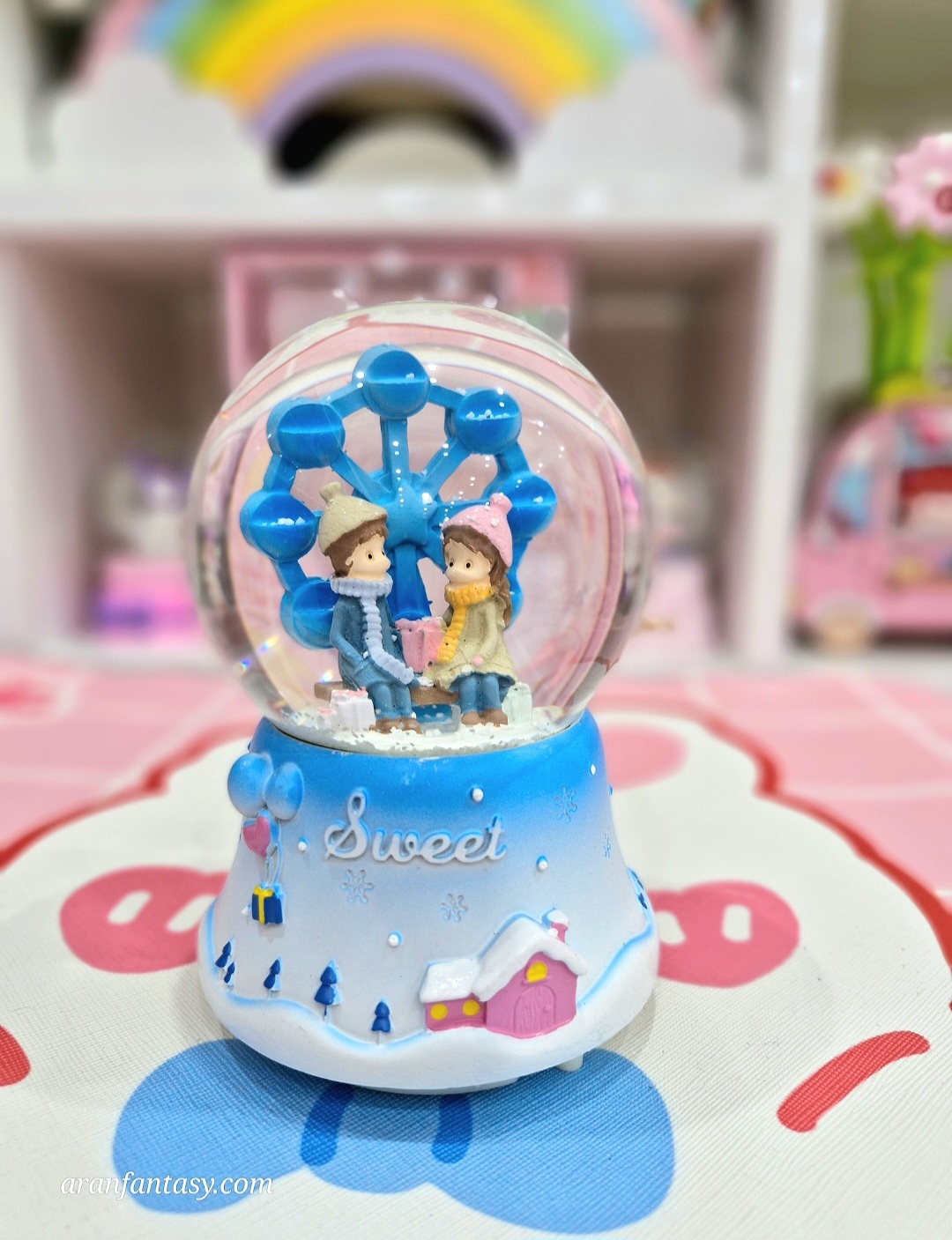گوی موزیکال فانتزی متوسط – طرح دختر و پسر عاشق و چرخ فلک آبی ، وارداتی