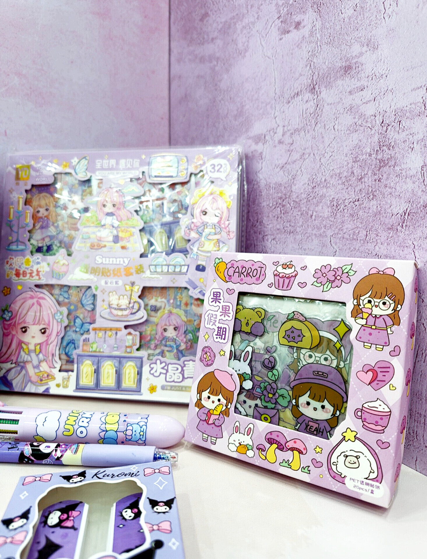 4-پک استیکر ۲۰ تایی طرح دختر کیوت و بنفش