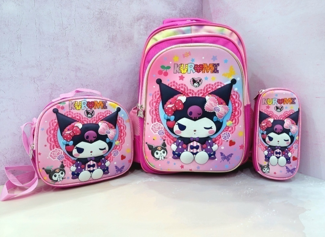 کیف مدرسه اورجینال سه تیکه و چراغ دار طرح کرومی پاپیون دار
