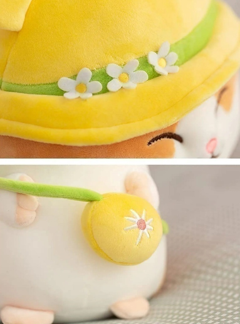 روی کلاه سنجاب ها ۳ تا گل سفید هست که خود عروسک اون هارو نداره