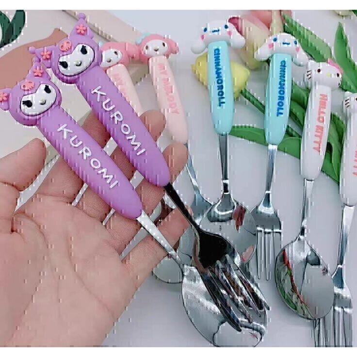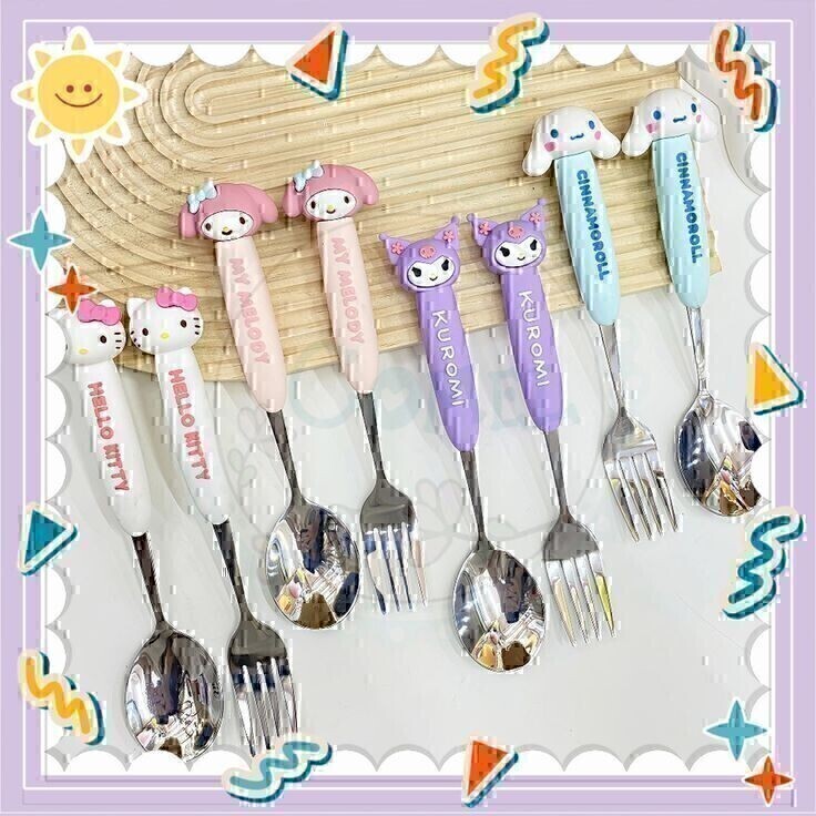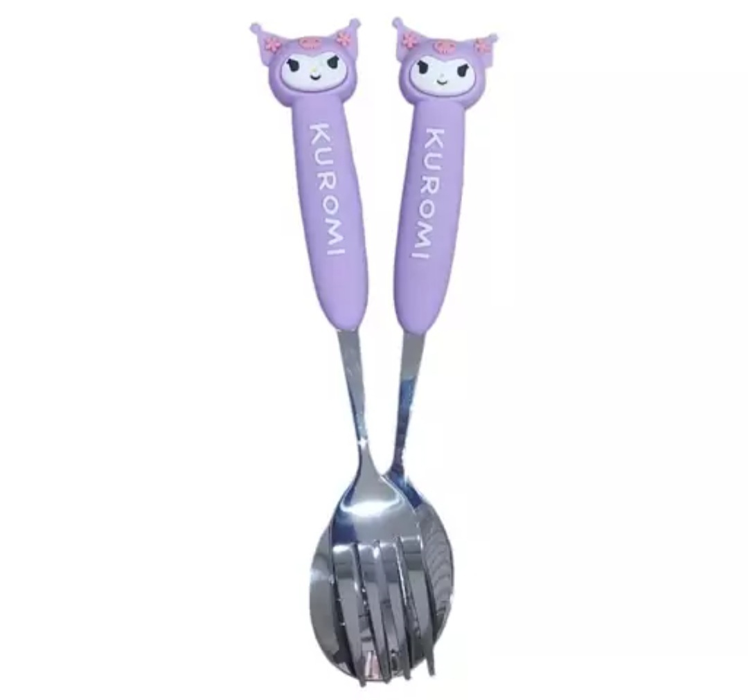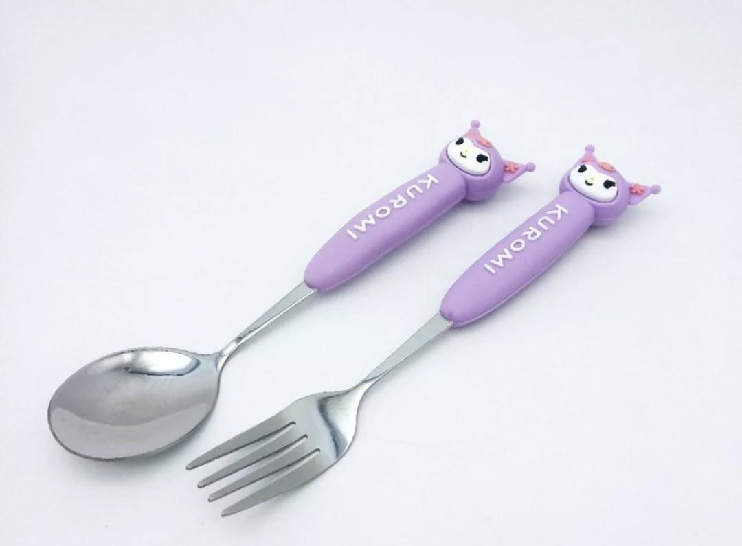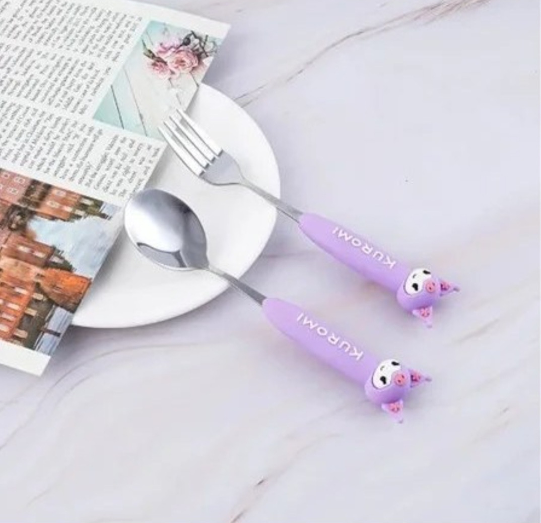 **قاشق و چنگال استیل با طرحهای خاص کرومی، ملودی، کیتی،سینامورول و پوم پوم**