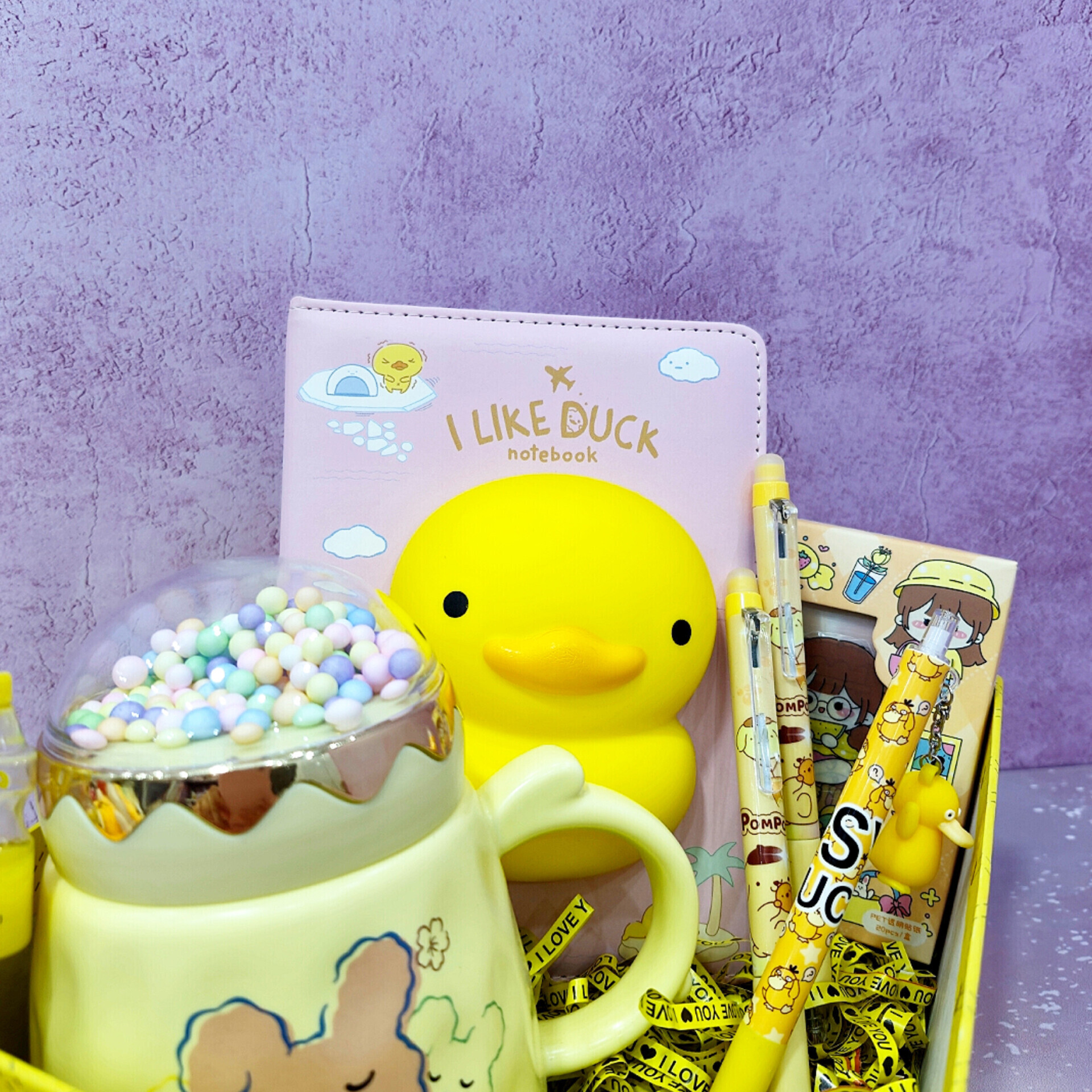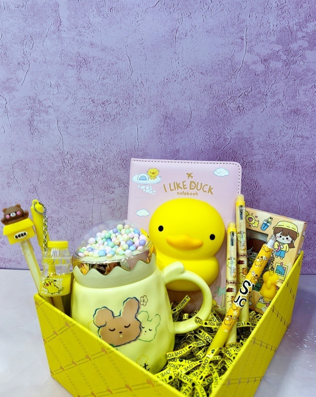 از دفترچههای خاص گرفته تا عروسکهای بامزهای که حس خوشحالی را به لحظات شما میآورند، هر قطعه از این ست با دقت طراحی شده تا خنده را به لبها و خلاقیت را به زندگی شما بیاورد! این هدیهای عالی برای هر کسی است که دوست دارید شادی زرد را به زندگیاش اضافه کنید.