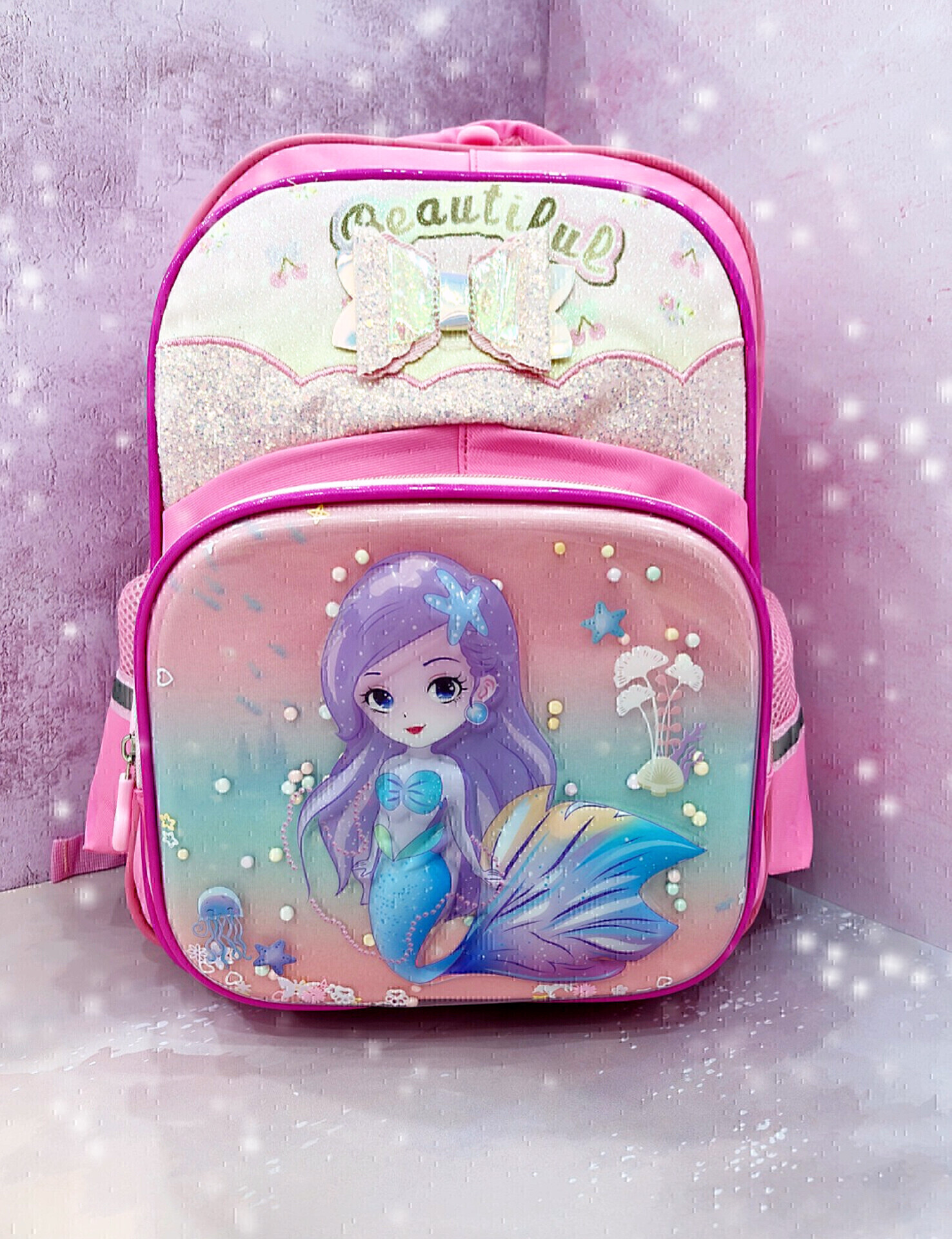 کیف مدرسه آکواریومی طرح پری دریایی صورتی خارجی